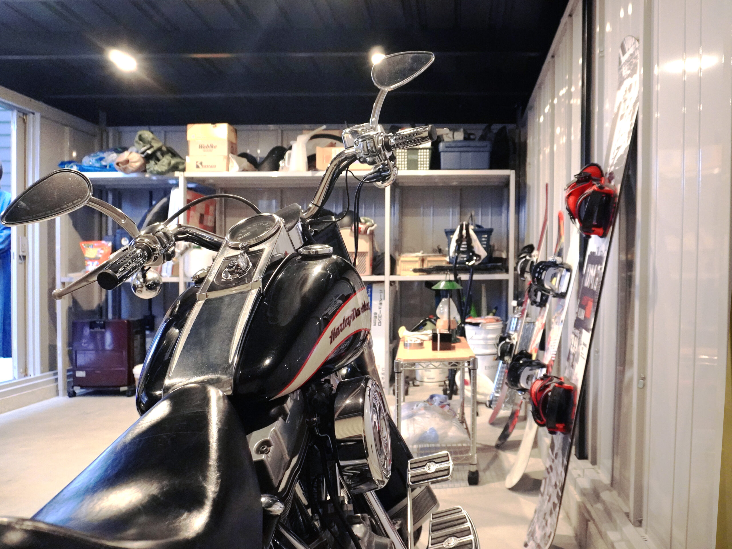 ここは僕の夢だった「男の城」です(笑)。バイクとスノーボードを置いて、好きな時にいじったり眺めたりしたくて。